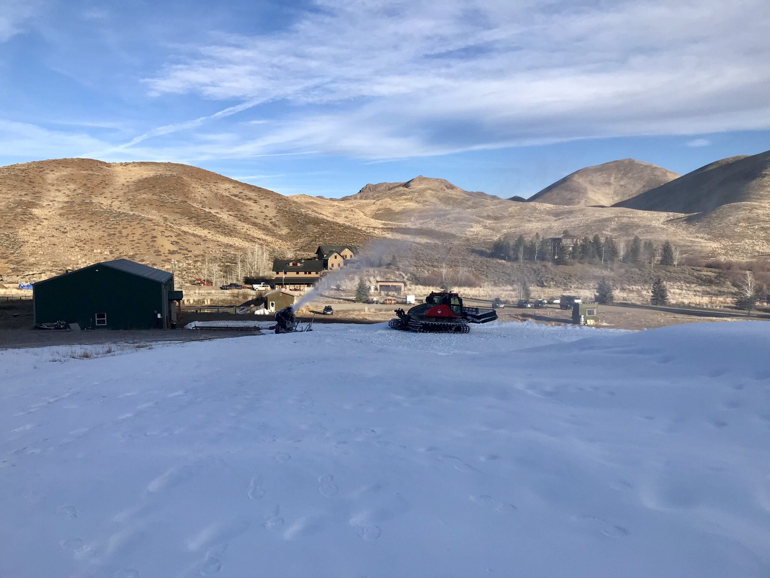 Our big dreams of opening on December 26 were drowned out by the holiday week’s atmospheric river and consistently warm temperatures. Thanks to the post-Chritsmas cold front, our snowmaking team was able to produce 500,000 gallons worth of snow with our snowmaking system and will be pushing that out across the hill over the next couple of days. Stay tuned for a new opening date as we wait out this unseasonably warm start to winter.