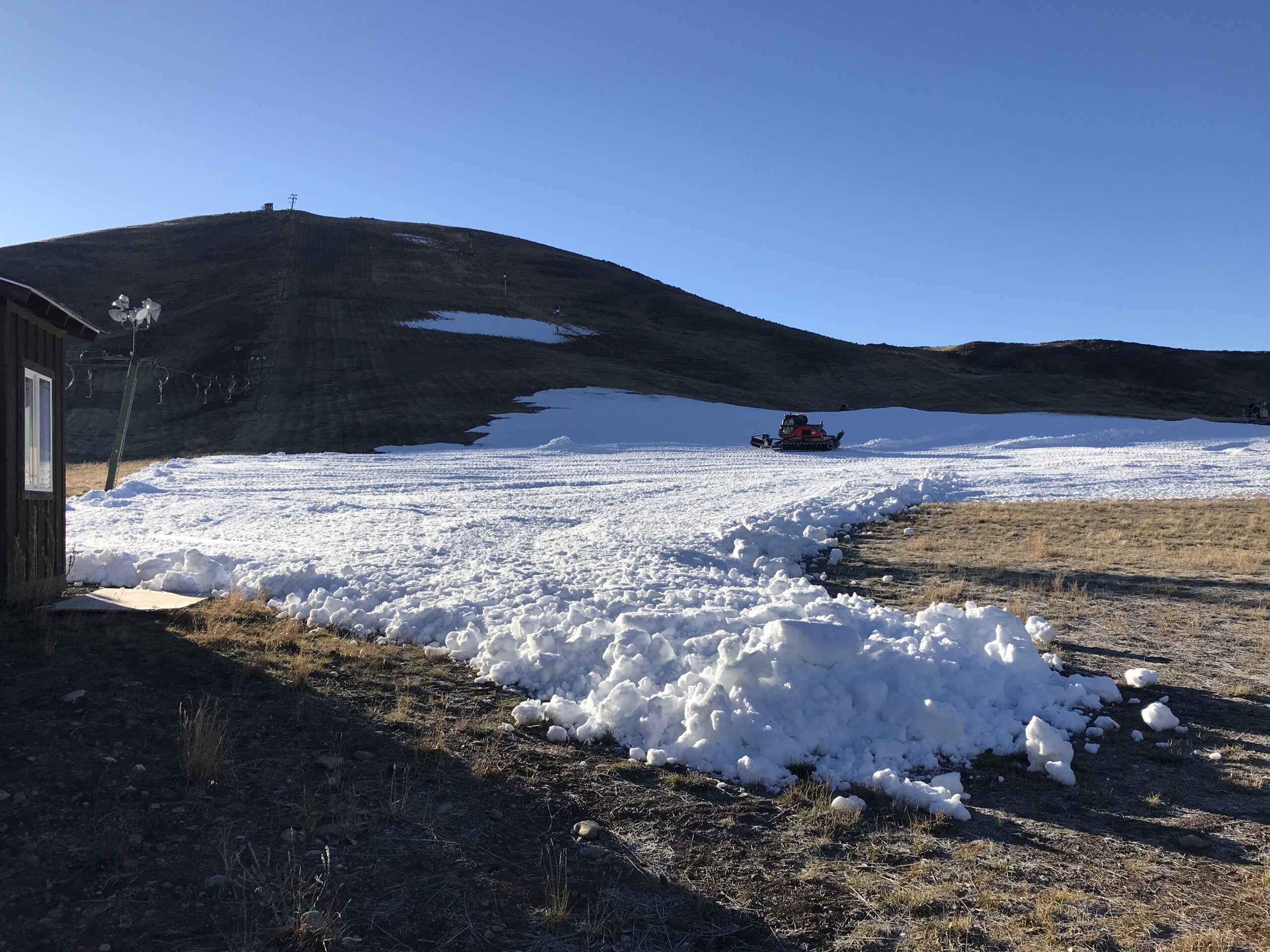 Our big dreams of opening on December 26 were drowned out by the holiday week's atmospheric river and consistently warm temperatures. Thanks to the post-Chritsmas cold front, our snowmaking team was able to produce 500,000 gallons worth of snow with our snowmaking system and will be pushing that out across the hill over the next couple of days. Stay tuned for a new opening date as we wait out this unseasonably warm start to winter.